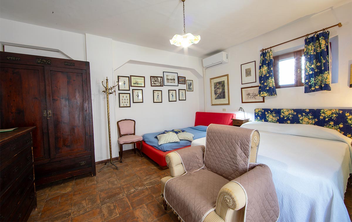 La camera più grande del casale principale. Freschissima d’estate, può ospitare tre o quattro persone (una famiglia con due bambini, ad esempio).