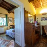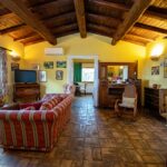Travi in castagno, cotto antico ed ampie vetrate con vista mozzafiato sulla valle del fiume Farfa.